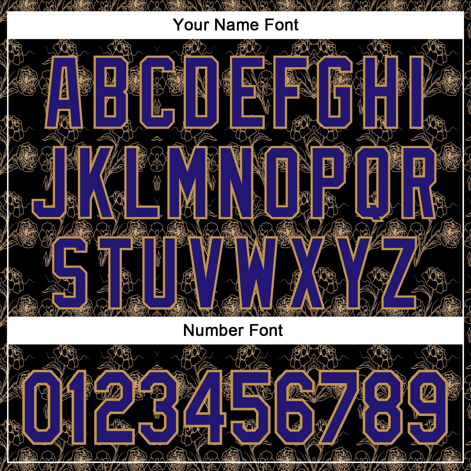 Custom Stitched Black Dark Purple-Old Gold 3D Pattern Design Golden Subtle Floral Sports Pullover Sweatshirt Hoodie