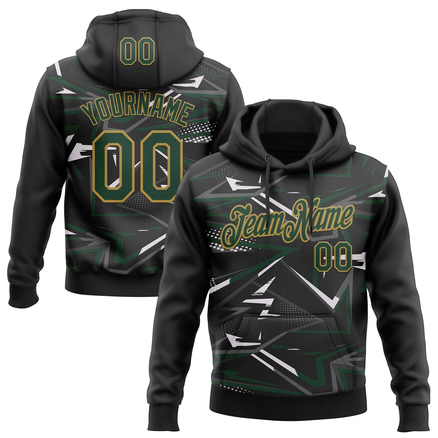 Custom Stitched Black Green Old Gold-White 3D Pattern Design Line Sports Pullover Sweatshirt Hoodie