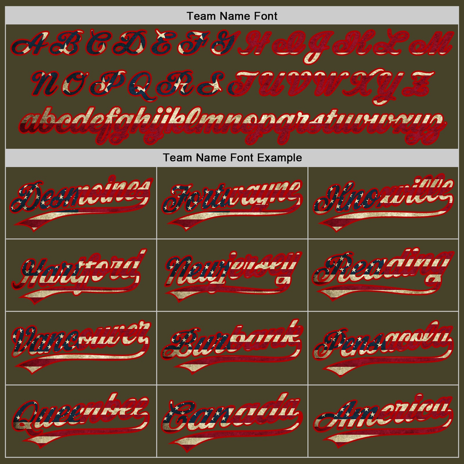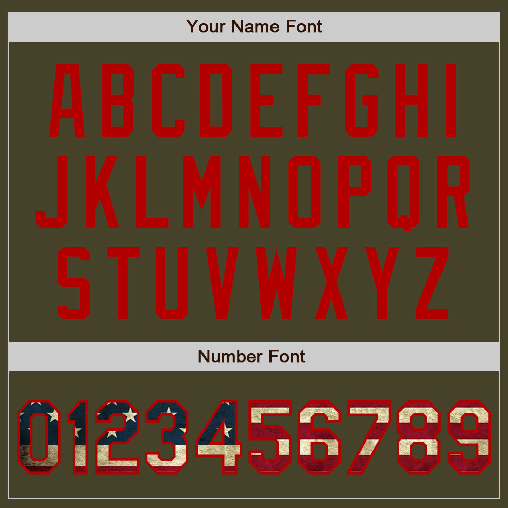 Custom Stitched Olive Vintage USA Flag-Red Baseball Pullover Sweatshirt Hoodie