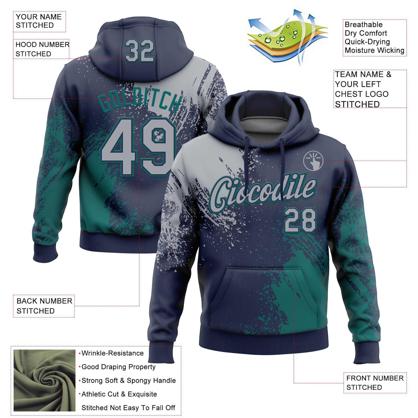Custom Stitched Navy Gray-Teal 3D Pattern Design Abstract Brush Stroke Sports Pullover Sweatshirt Hoodie
