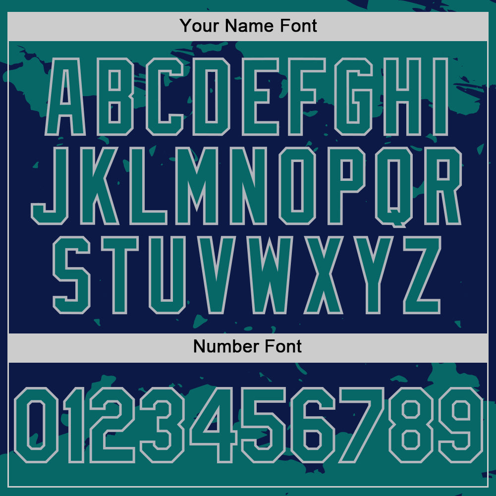Custom Navy Teal-Gray Splash Art 3D Pattern Design Bomber Full-Snap Varsity Letterman Hoodie Jacket