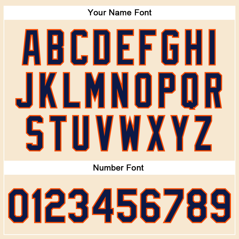 Custom Cream Navy-Orange Bomber Full-Snap Varsity Faux Leather Letterman Jacket