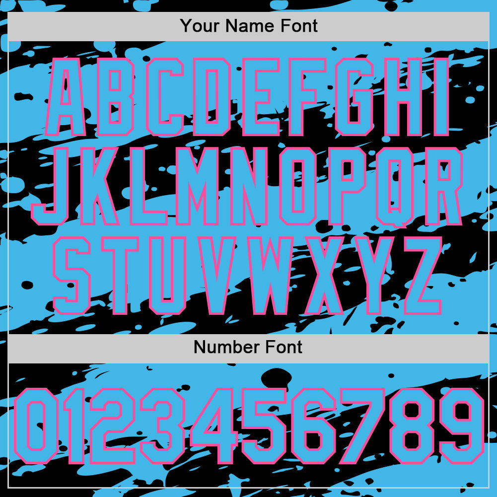 Custom Black Sky Blue-Pink Splash 3D Pattern Design Bomber Full-Snap Varsity Letterman Hoodie Jacket