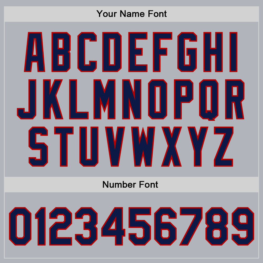 Custom Gray Navy-Red Bomber Full-Snap Varsity Faux Leather Letterman Jacket