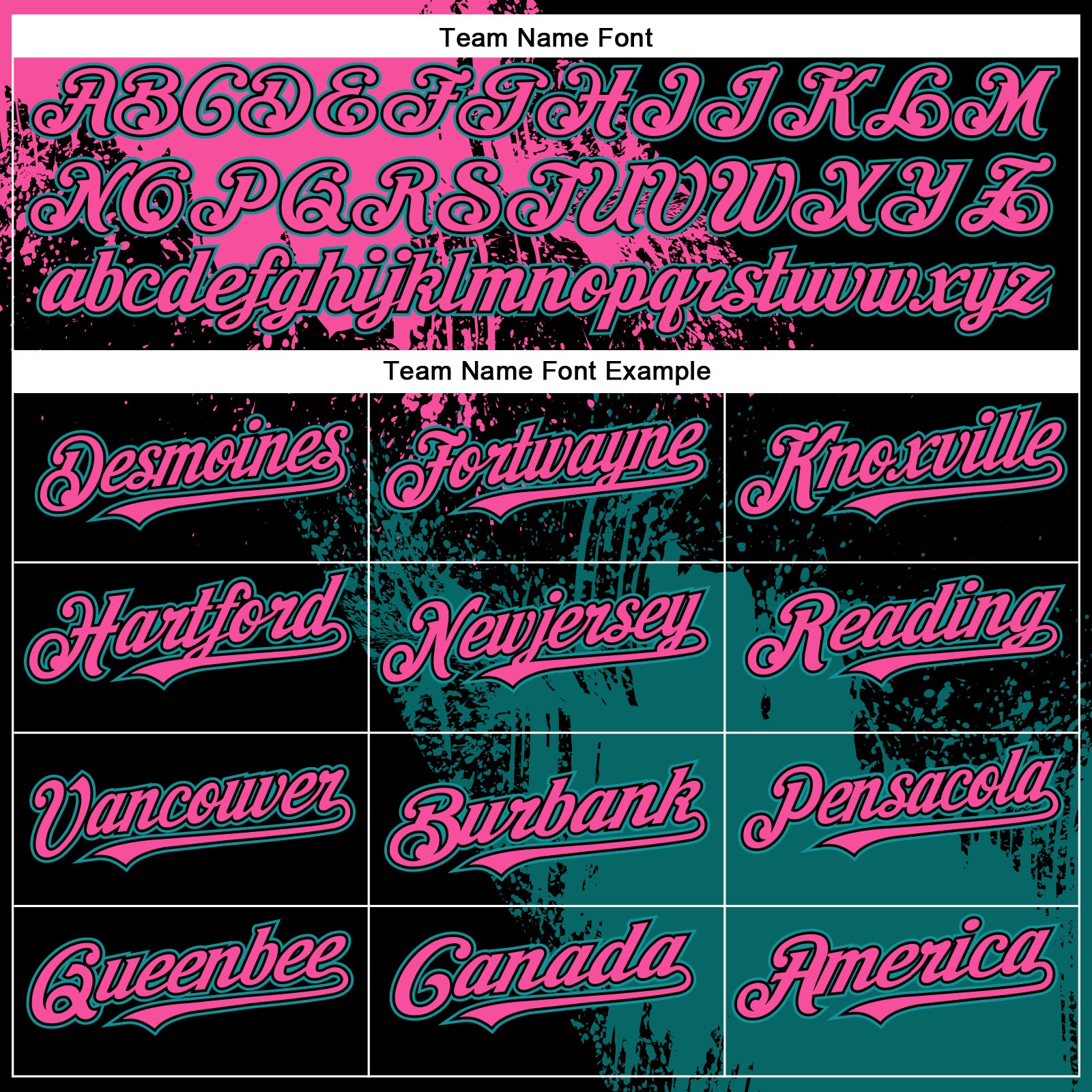 Custom Black Pink-Teal Abstract Brush Stroke 3D Pattern Design Bomber Full-Snap Varsity Letterman Hoodie Jacket