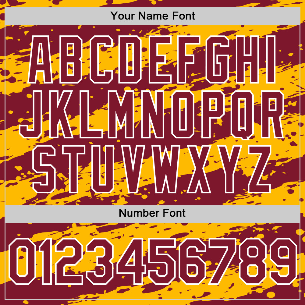Custom Gold Crimson-White Splash 3D Pattern Design Bomber Full-Snap Varsity Letterman Hoodie Jacket