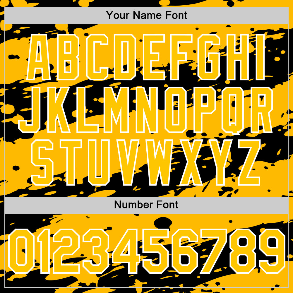 Custom Black Gold-White Splash 3D Pattern Design Bomber Full-Snap Varsity Letterman Hoodie Jacket