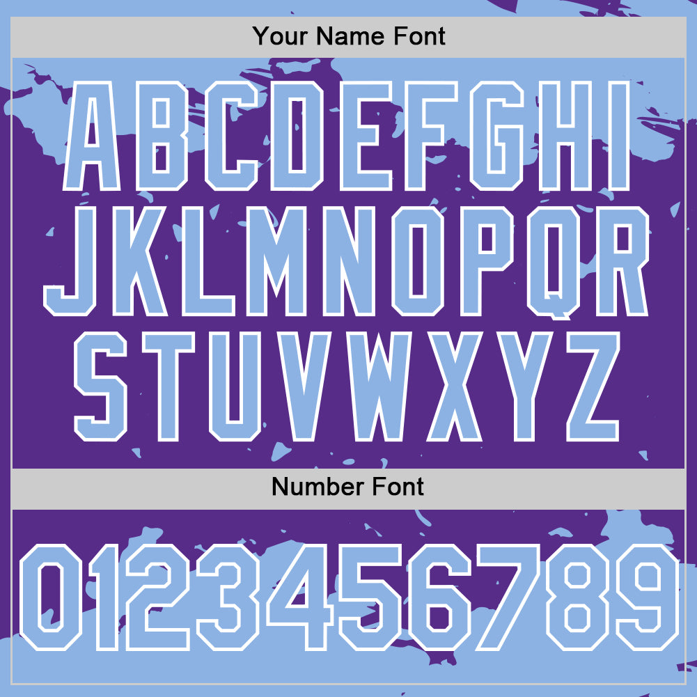 Custom Purple Light Blue-White Splash Art 3D Pattern Design Bomber Full-Snap Varsity Letterman Hoodie Jacket