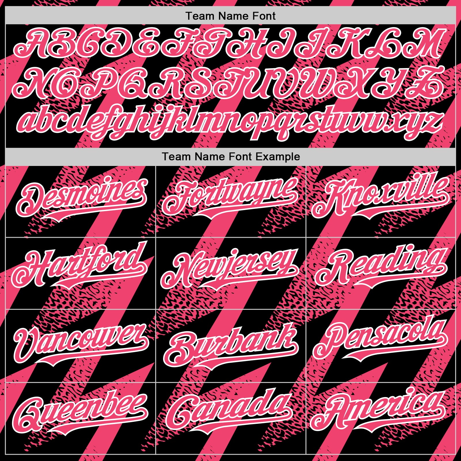 Custom Black Neon Pink-White Zigzag Shape 3D Pattern Design Bomber Full-Snap Varsity Letterman Hoodie Jacket