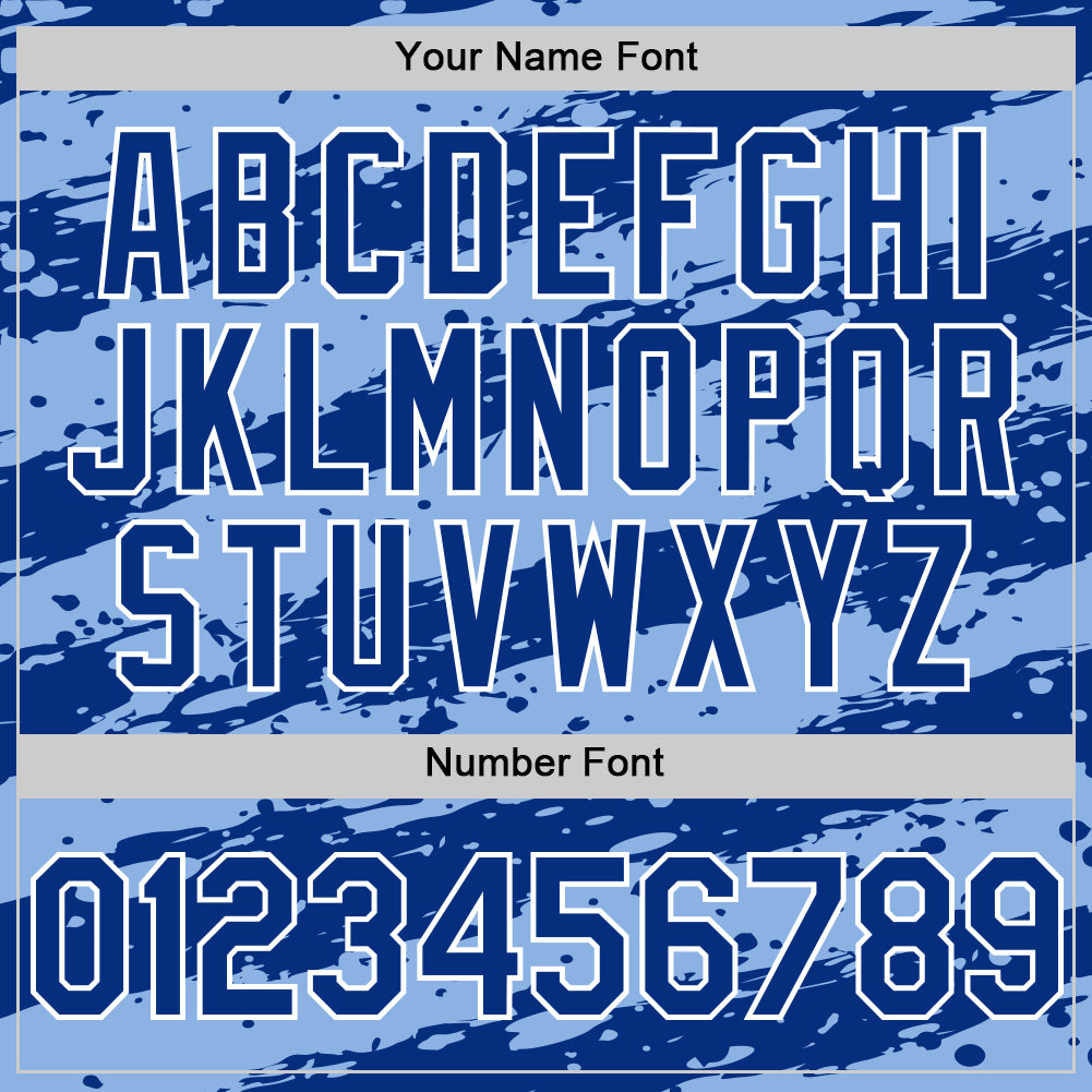 Custom Light Blue Royal-White Splash 3D Pattern Design Bomber Full-Snap Varsity Letterman Hoodie Jacket