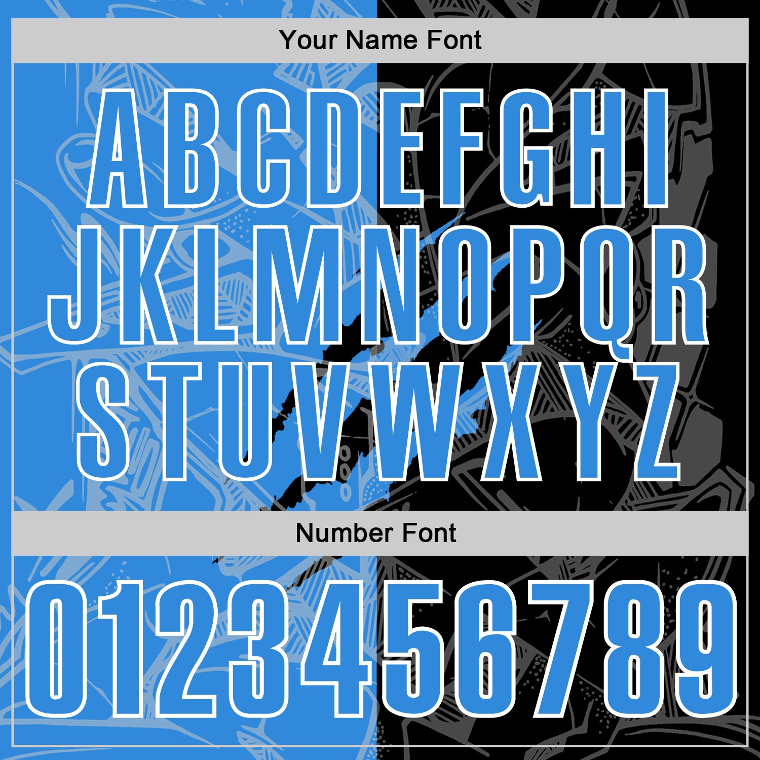 Custom Graffiti Pattern Electric Blue Black-White 3D Scratch Performance Polo Shirt
