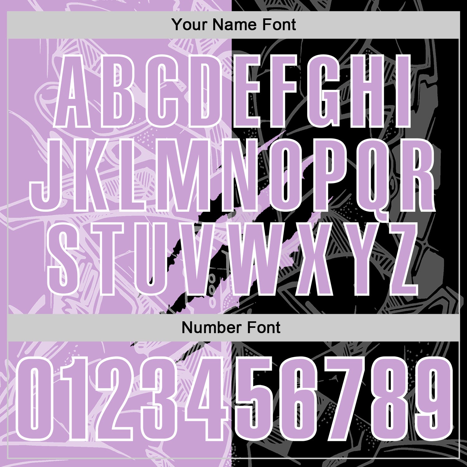 Custom Graffiti Pattern Light Purple Black-White 3D Scratch Performance Polo Shirt