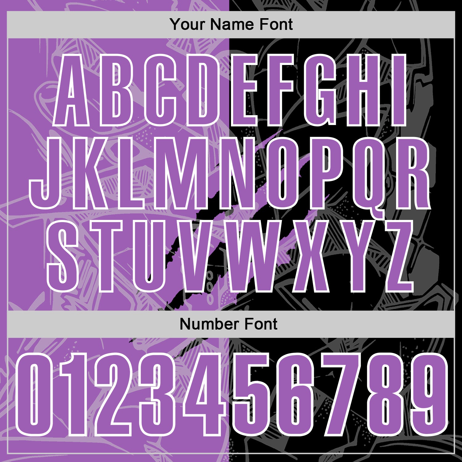 Custom Graffiti Pattern Medium Purple Black-White 3D Scratch Performance Polo Shirt