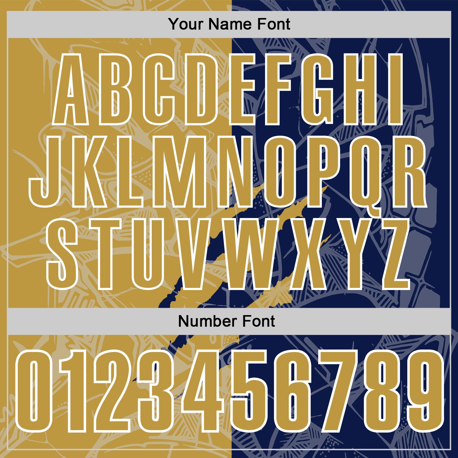 Custom Graffiti Pattern Old Gold Navy-White 3D Scratch Performance Polo Shirt