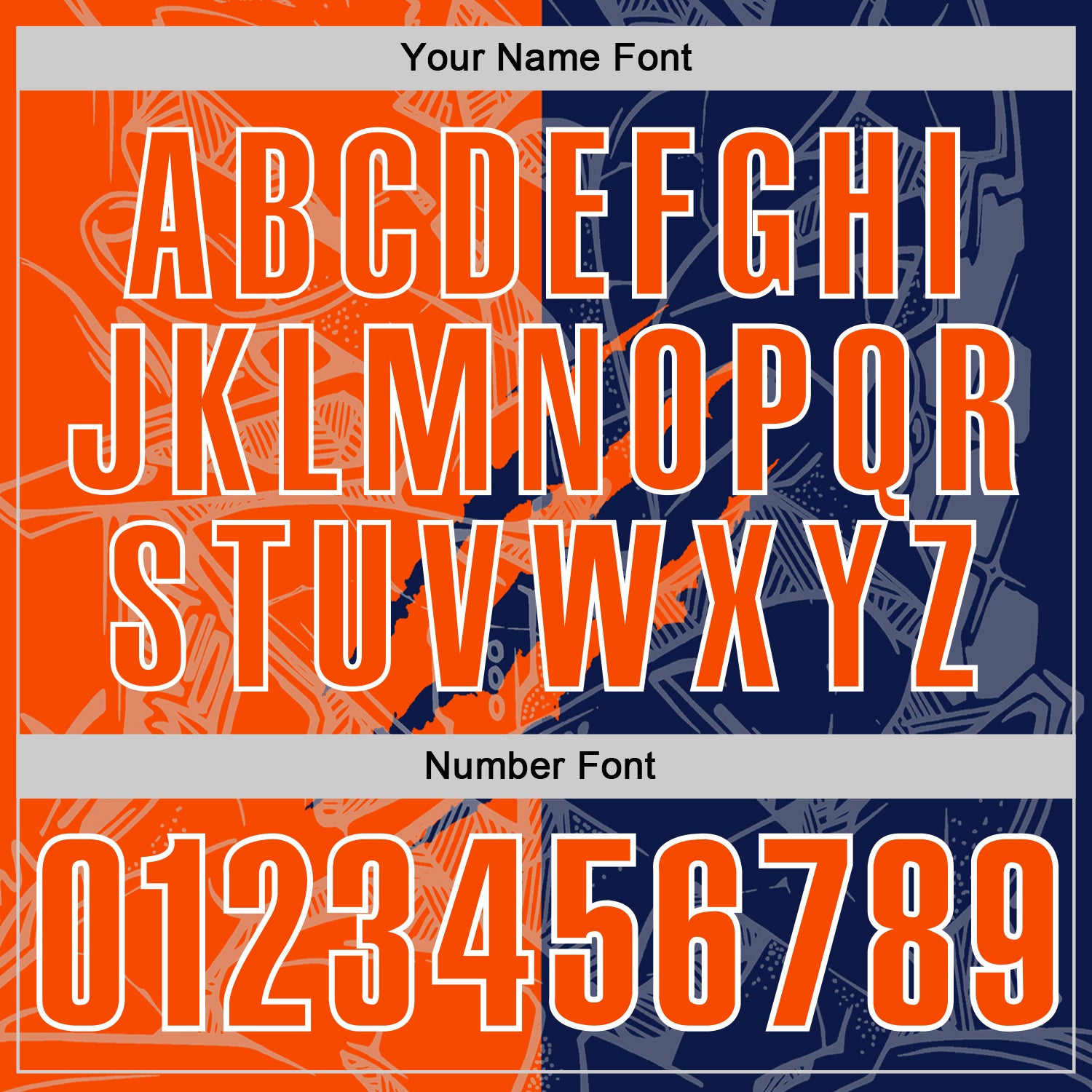Custom Graffiti Pattern Orange Navy-White 3D Scratch Performance Polo Shirt