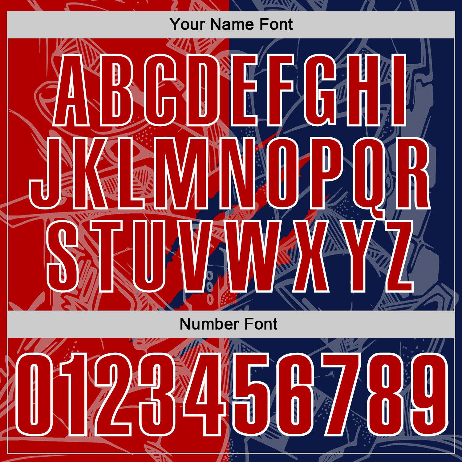 Custom Graffiti Pattern Red Navy-White 3D Scratch Performance Polo Shirt