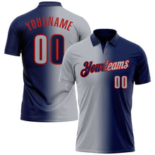 • Load image into Gallery viewer, Custom Navy Gray-Red 3D Gradient Fashion Performance Polo Shirt