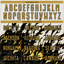 • Load image into Gallery viewer, Custom White Old Gold-Black Flame Sublimation Soccer Uniform Jersey