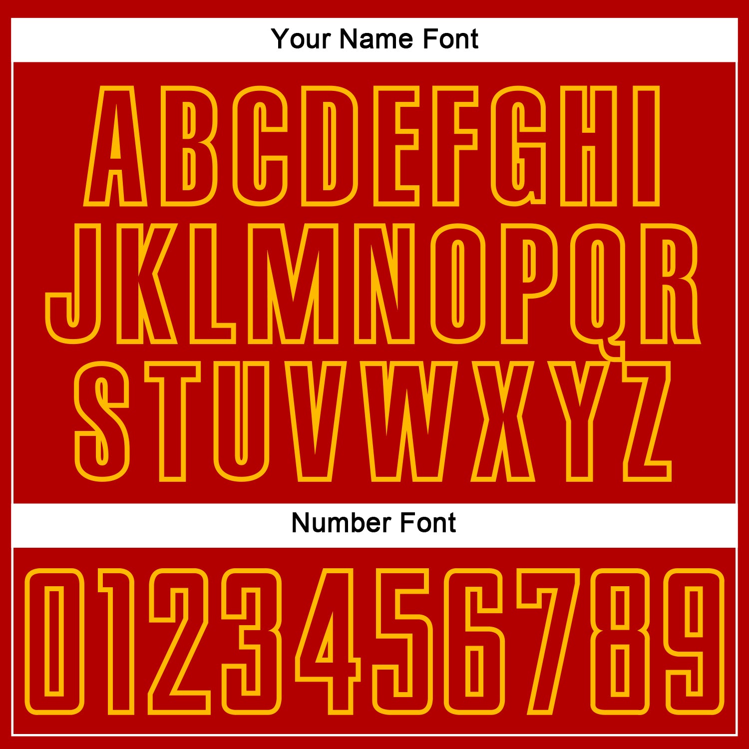 • Load image into Gallery viewer, Custom Red Gold Splash Sublimation Soccer Uniform Jersey