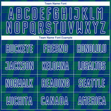 • Load image into Gallery viewer, Custom Royal Kelly Green-White Line Sublimation Soccer Uniform Jersey