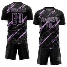 • Load image into Gallery viewer, Custom Black Light Purple Abstract Fragment Art Splash Sublimation Soccer Uniform Jersey