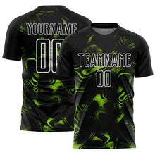• Load image into Gallery viewer, Custom Black Neon Green-White Abstract Liquid Sublimation Soccer Uniform Jersey