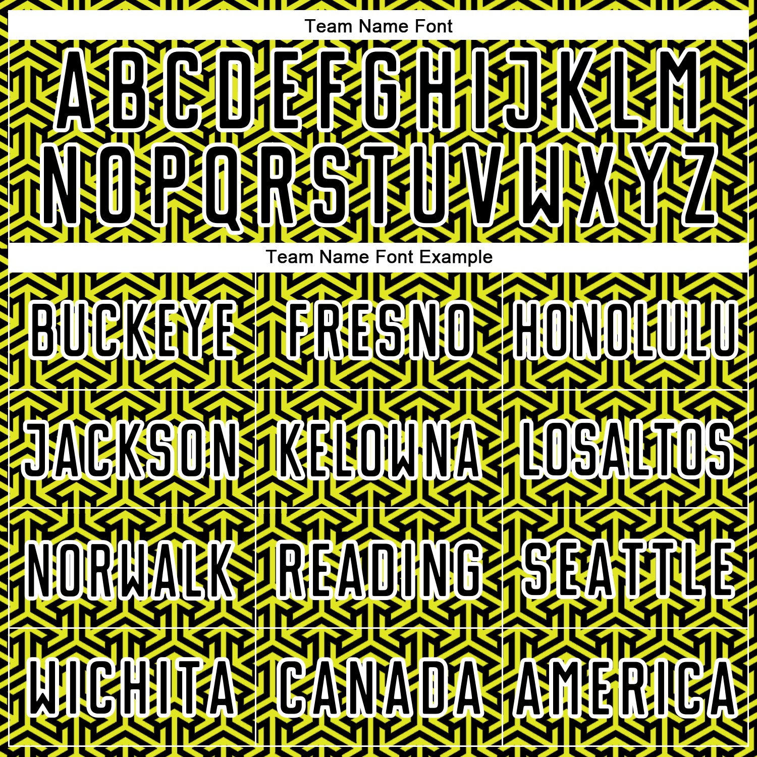 Custom Black Neon Yellow-White Geometric Arrow Sublimation Soccer Uniform Jersey
