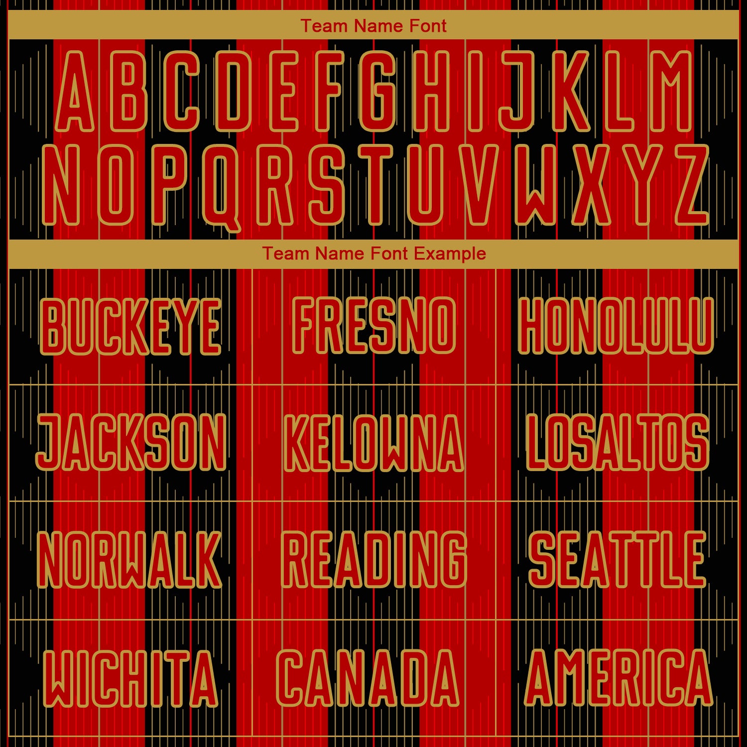 Custom Red Old Gold-Black Line Sublimation Soccer Uniform Jersey
