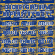• Load image into Gallery viewer, Custom Royal Old Gold-White Line Sublimation Soccer Uniform Jersey