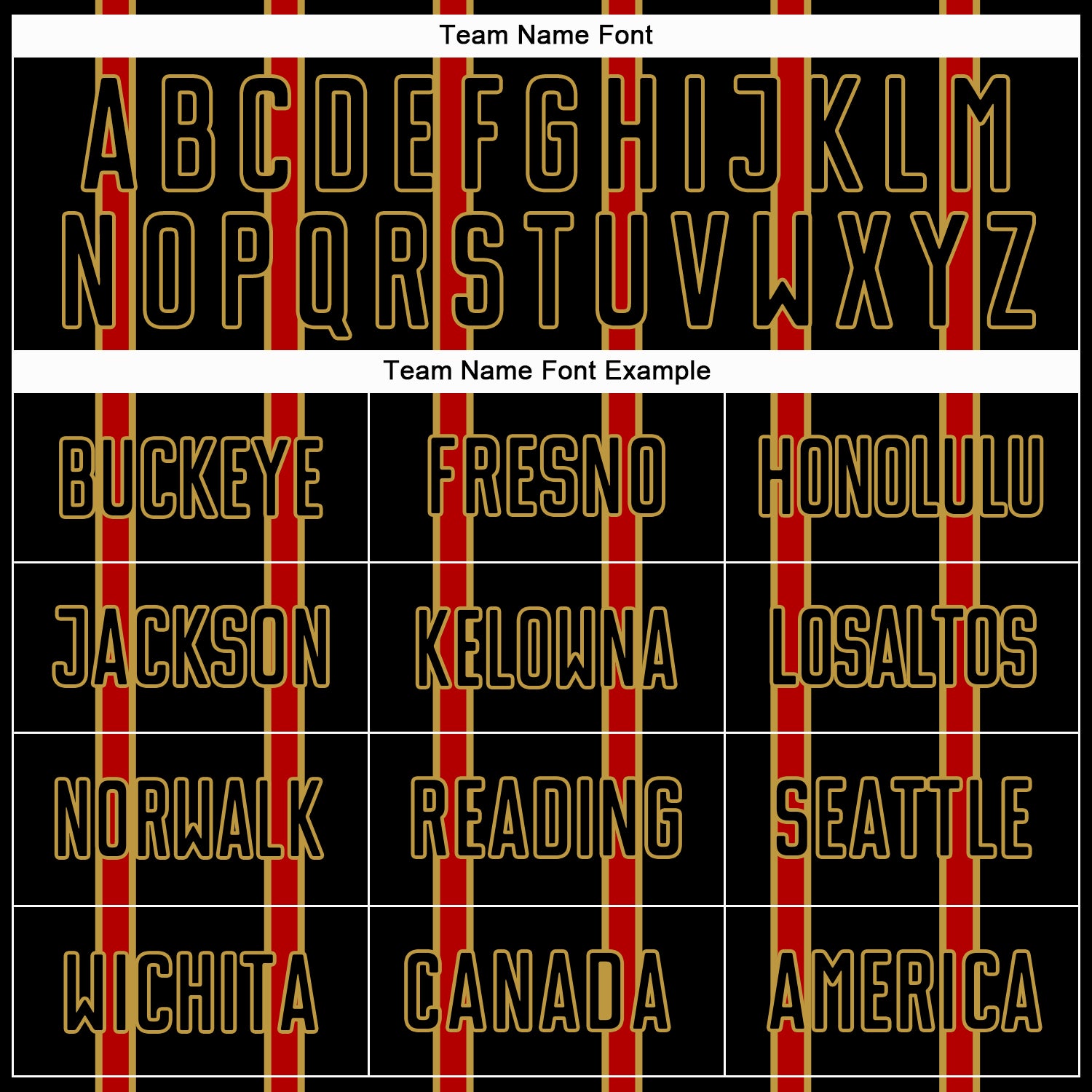 Custom Black Red-Old Gold Stripe Line Sublimation Soccer Uniform Jersey