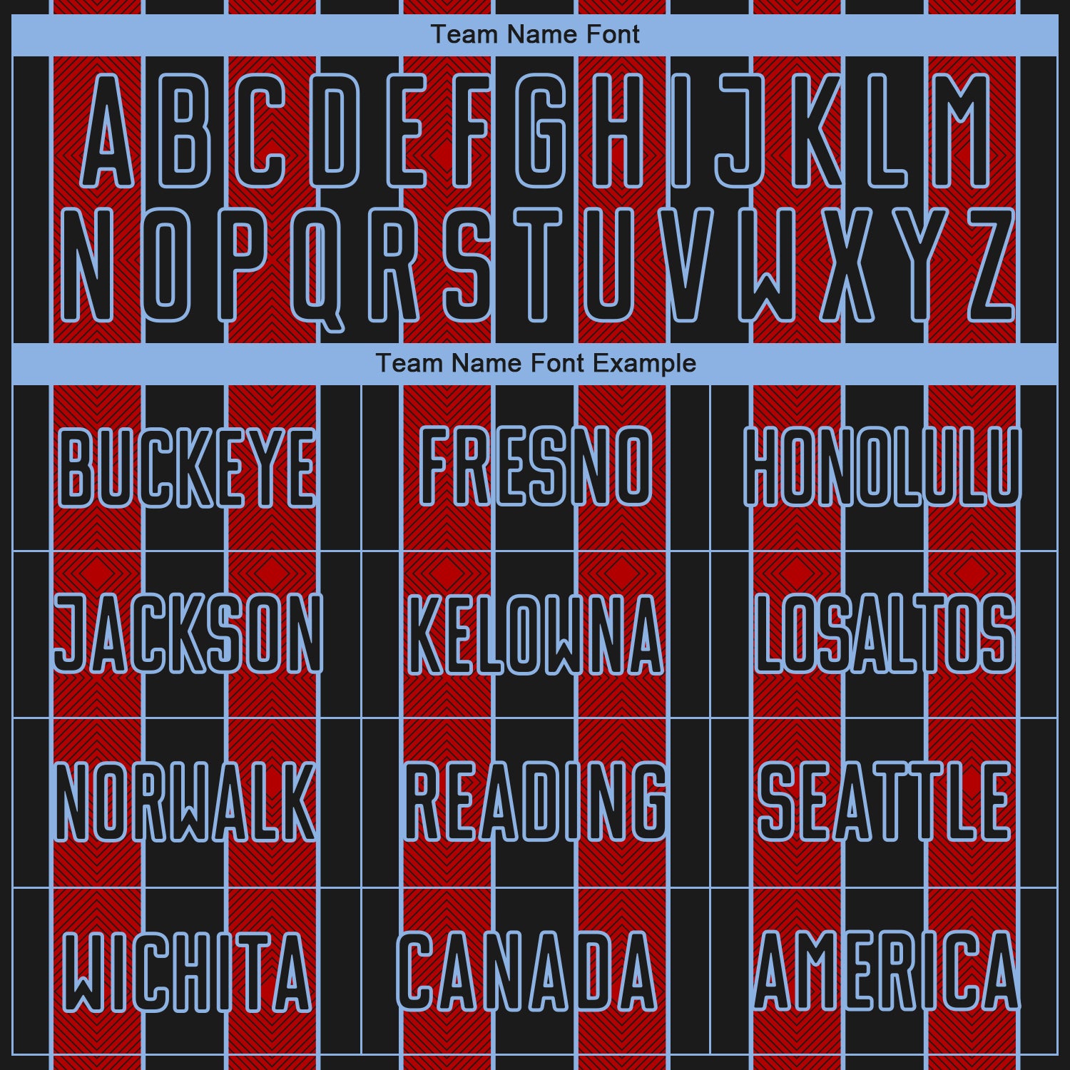 Custom Black Red-Light Blue Pinstripe Line Sports Sublimation Soccer Uniform Jersey