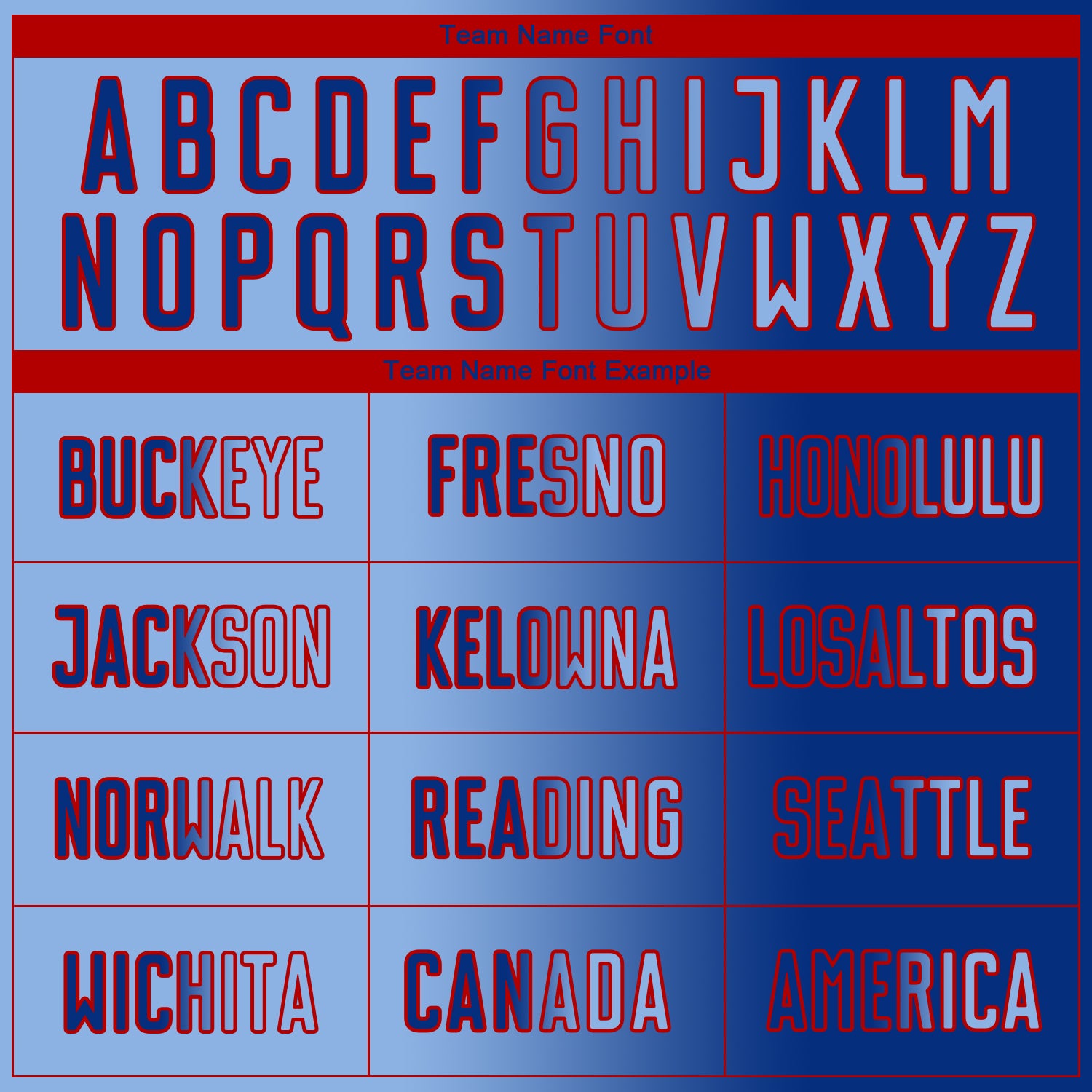 Custom Royal Light Blue-Red Sublimation Gradient Fashion Soccer Uniform Jersey