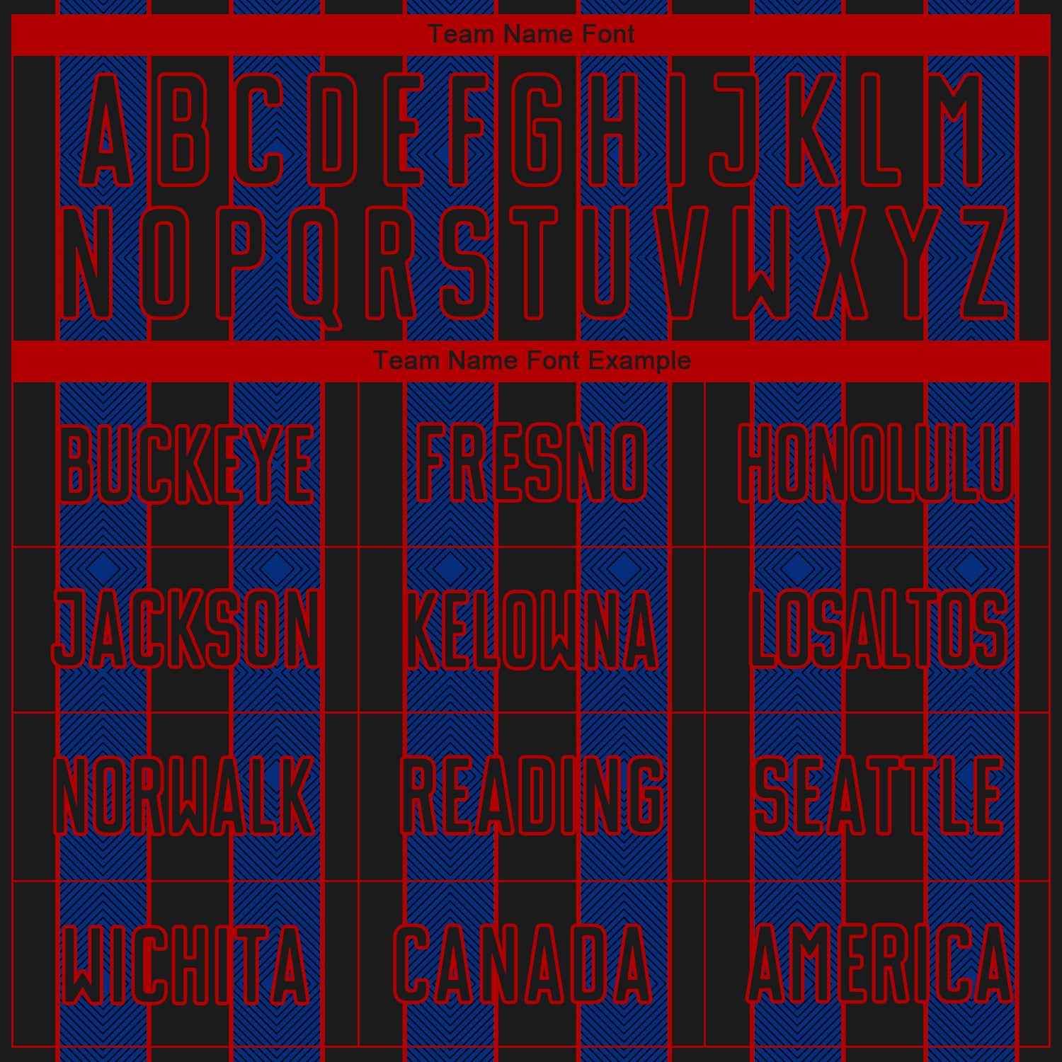 Custom Black Royal-Red Pinstripe Line Sports Sublimation Soccer Uniform Jersey