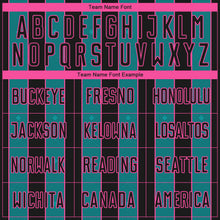 • Load image into Gallery viewer, Custom Black Teal-Pink Pinstripe Line Sports Sublimation Soccer Uniform Jersey