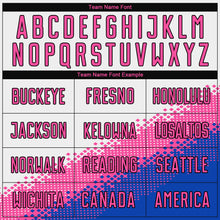 • Load image into Gallery viewer, Custom White Pink Thunder Blue-Black Gradient Geometric Shape Sublimation Soccer Uniform Jersey
