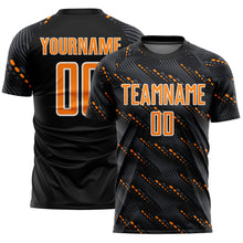 • Load image into Gallery viewer, Custom Black Bay Orange-White Slant Lines Sports Sublimation Soccer Uniform Jersey