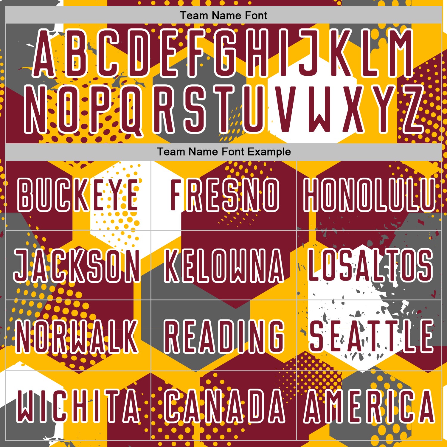 Custom Gold Crimson-White Geometric Shape Sublimation Soccer Uniform Jersey