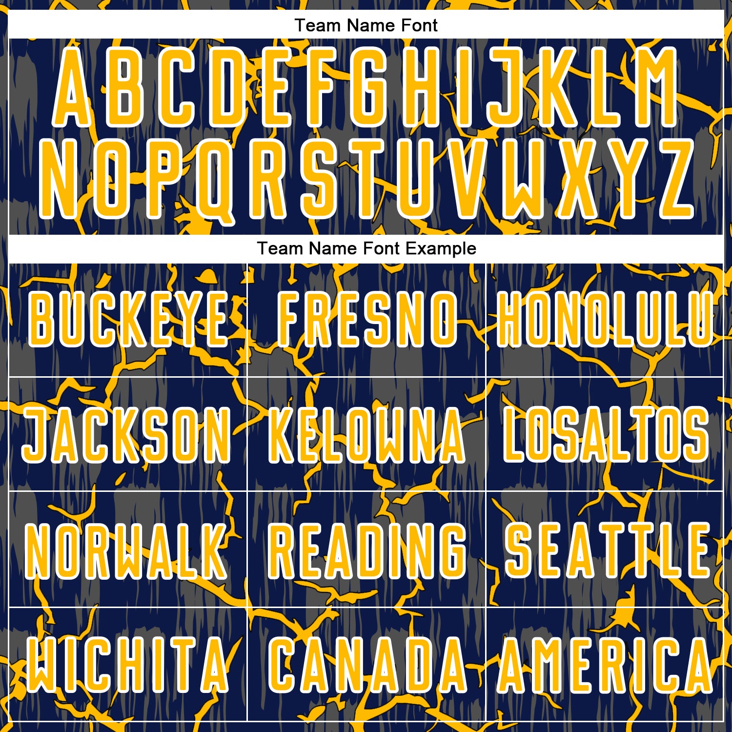 Custom Navy Gold-White Lightning Sublimation Soccer Uniform Jersey
