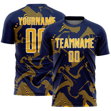 • Load image into Gallery viewer, Custom Navy Gold-White Curve Lines Sports Sublimation Soccer Uniform Jersey