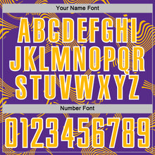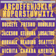 • Load image into Gallery viewer, Custom Purple Gold-White Curve Lines Sports Sublimation Soccer Uniform Jersey