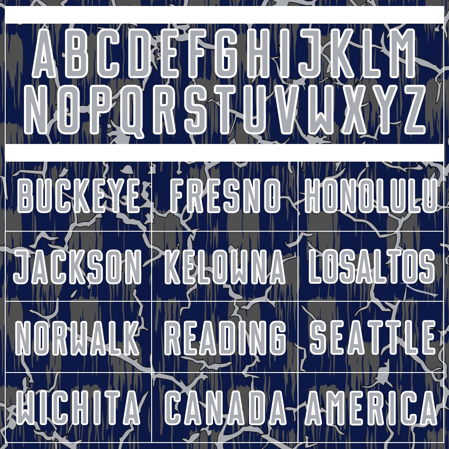 Custom Navy Gray-White Lightning Sublimation Soccer Uniform Jersey