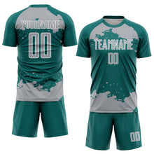 • Load image into Gallery viewer, Custom Teal Gray-White Abstract Fragment Art Sublimation Soccer Uniform Jersey