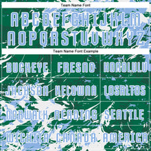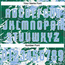 • Load image into Gallery viewer, Custom Kelly Green Light Blue-White Fluid Art Splash Sublimation Soccer Uniform Jersey