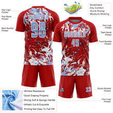 • Load image into Gallery viewer, Custom Red Light Blue-White Fluid Art Splash Sublimation Soccer Uniform Jersey