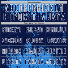 • Load image into Gallery viewer, Custom Powder Blue Navy-White Abstract Splatter Grunge Art Sports Sublimation Soccer Uniform Jersey