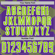 • Load image into Gallery viewer, Custom Purple Neon Green-White Curve Lines Sports Sublimation Soccer Uniform Jersey