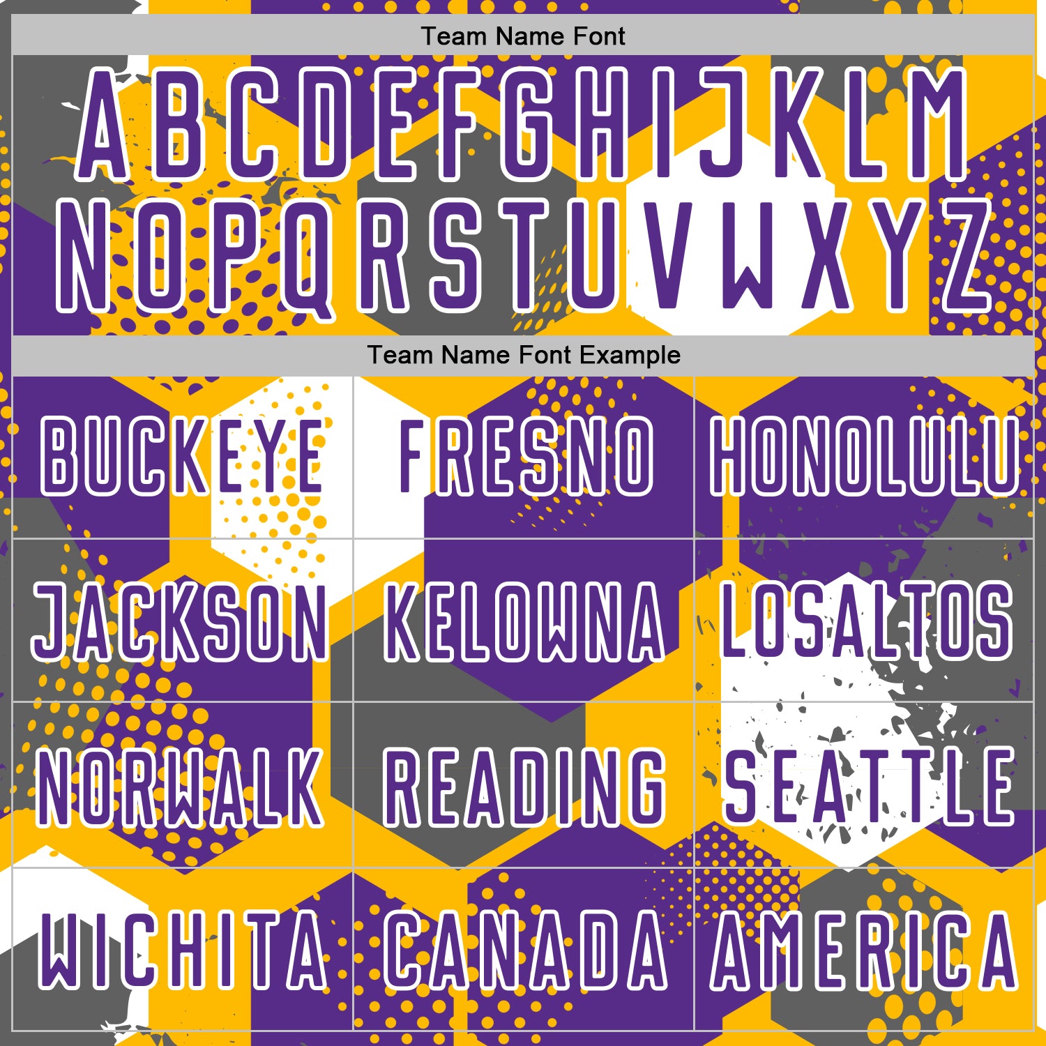 Custom Gold Purple-White Geometric Shape Sublimation Soccer Uniform Jersey