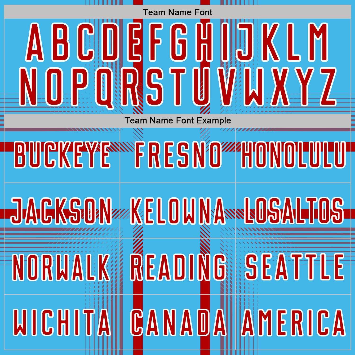 Custom Sky Blue Red-White Lines Sublimation Soccer Uniform Jersey