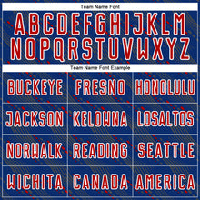 • Load image into Gallery viewer, Custom Royal Red-White Slant Lines Sports Sublimation Soccer Uniform Jersey