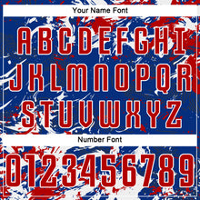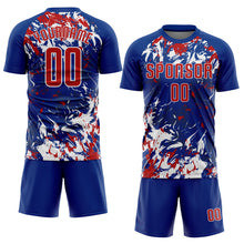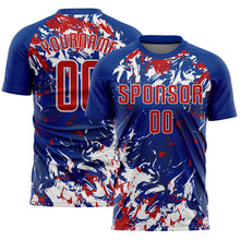 • Load image into Gallery viewer, Custom Royal Red-White Fluid Art Splash Sublimation Soccer Uniform Jersey
